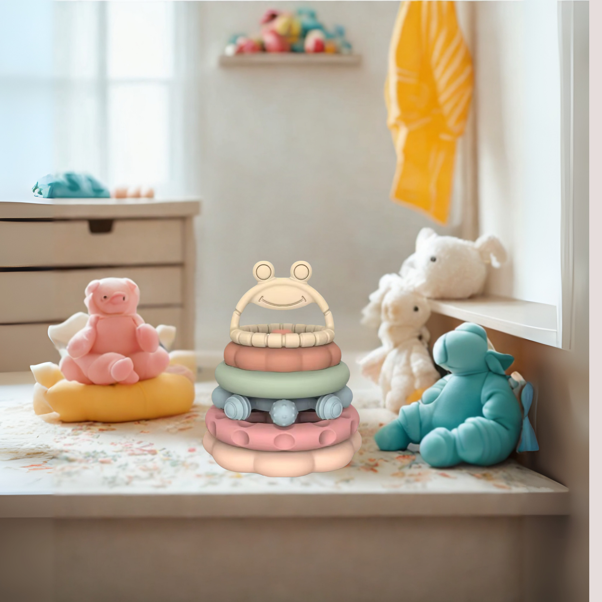 Conçu pour soulager les gencives de bébé, notre anneau de dentition "Petite Grenouille" est le compagnon idéal de la poussée dentaire. Fabriqué en silicone souple et sécuritaire, il offre plusieurs textures pour apaiser et éveiller les sens. Un indispensable pour les moments de soulagement et de jeu.