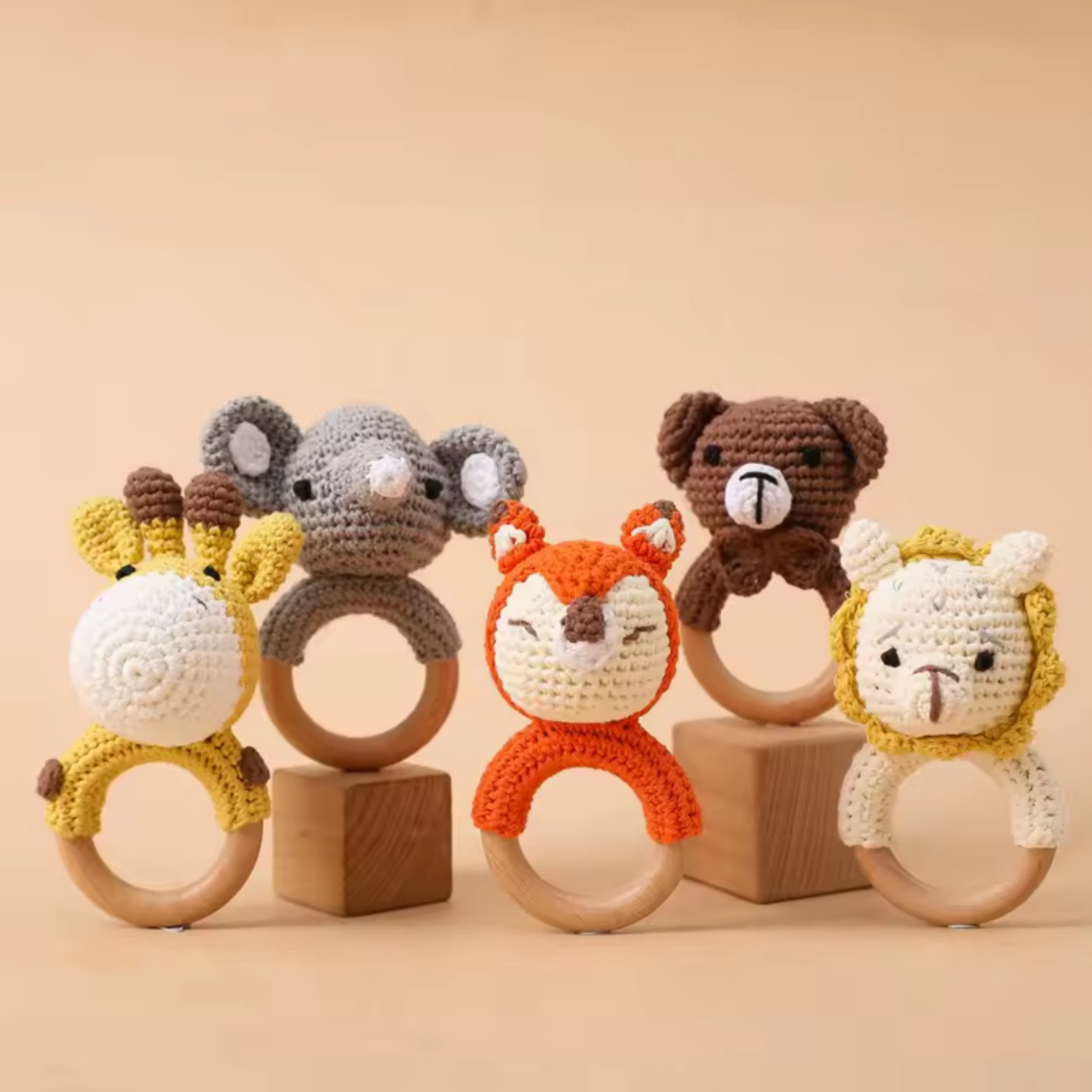 Découvrez notre charmante collection d'anneaux de dentition, où le confort du crochet fait main rencontre la sécurité du bois de hêtre naturel. Chaque anneau est conçu pour apaiser les petites gencives de bébé, tout en stimulant ses sens avec des textures douces et des visages d'animaux irrésistiblement mignons.