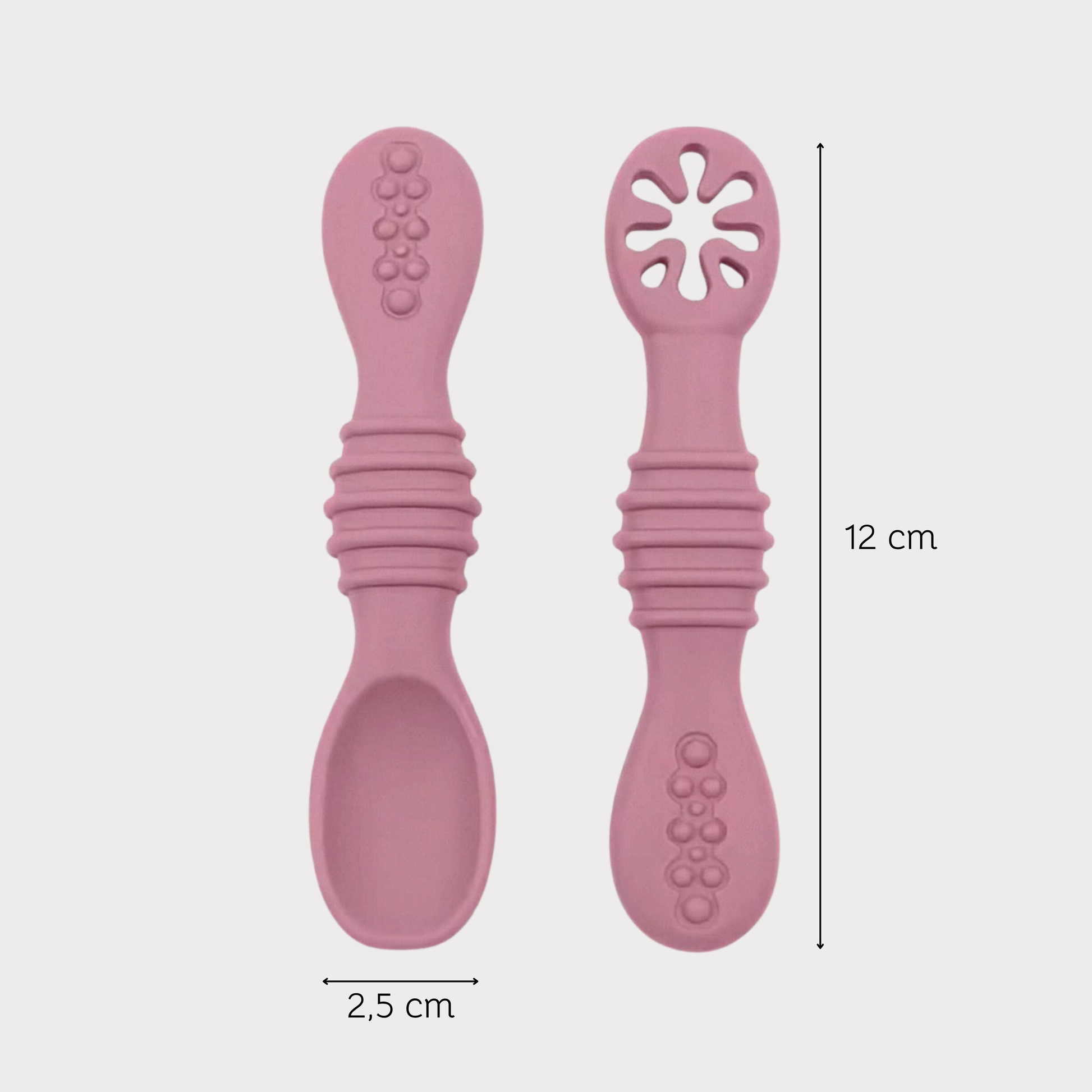 Douces pour les Petites Gencives grâce au silicone souple. Favorise l'Autonomie grâce à la prise en main facile et le double embout.