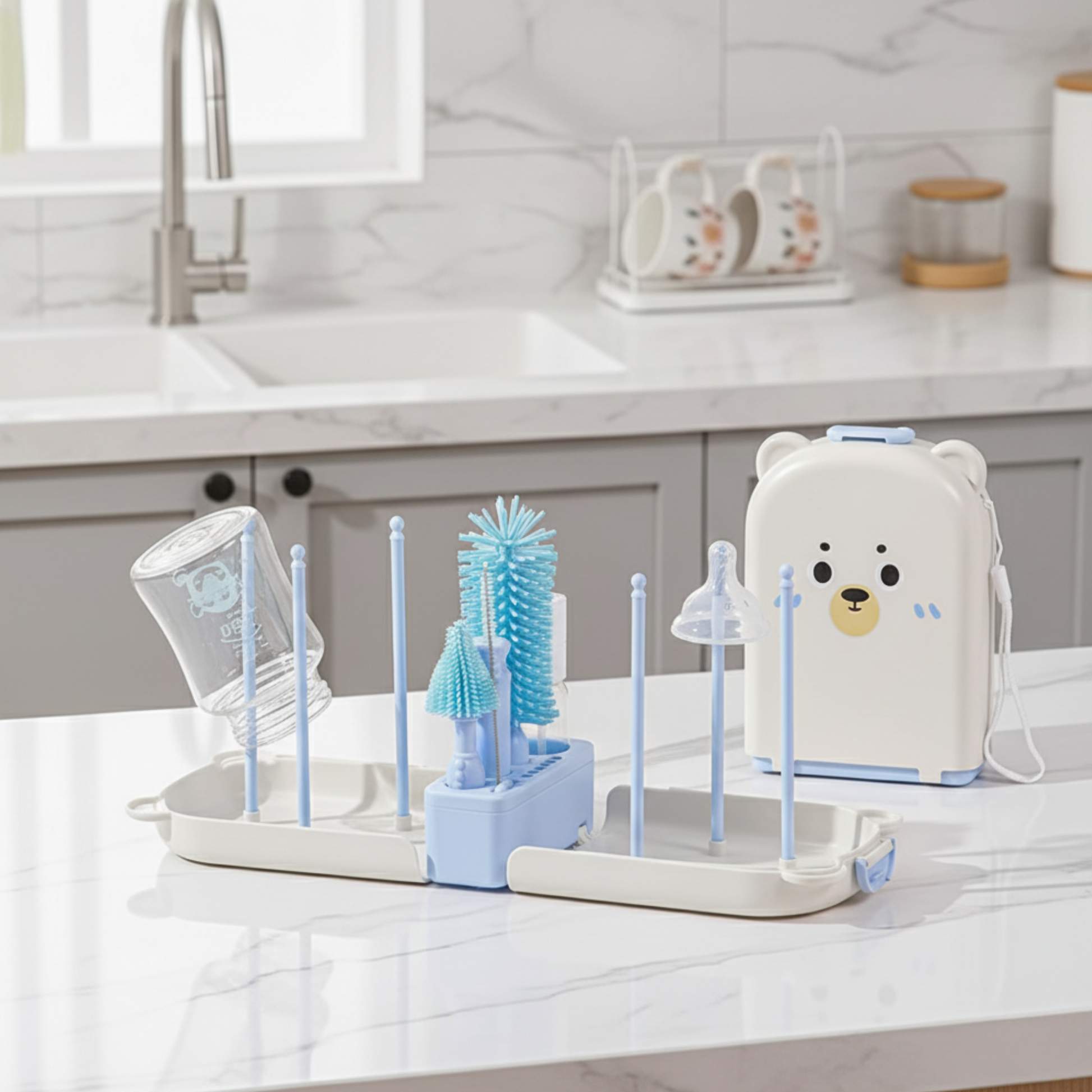 Égouttoir à Biberons de Voyage Portable - Kit de Nettoyage